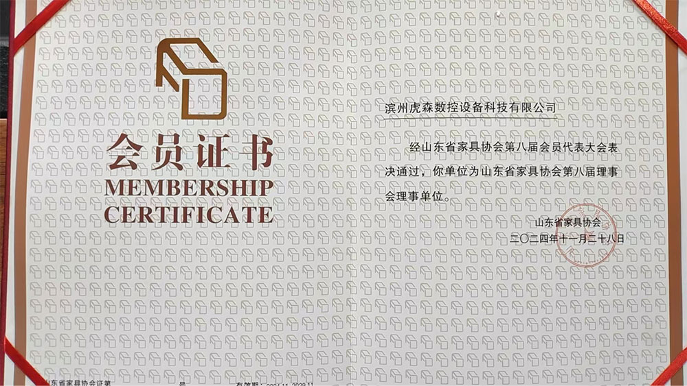濱州虎森數(shù)控設備科技有限公司榮膺山東省家具協(xié)會理事單位,共譜行業(yè)新篇